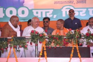 तजिये ताहि कोटि बैरी सम, जद्यपि परम सनेही जो राम का विरोधी है वो हमारा भी विरोधी है हम सदैव उसके खिलाफ खड़े मिलेंगे ऐसे राम विरोधियों को वोट नहीं देना है। सीएम योगी ने कहा, अबतक जो चुनाव हुए हैं उसमें जो रुझान आए हैं उसमें साफ हैं कि इस बार फिर मोदी सरकार गरीब कल्याण योजनाओं की तो कोई बात ही नहीं। पहले गरीब चिकित्सा के अभाव में मरता था, भूख से मरता था, वर्षा और सर्दी में घर न होने की वजह से मरता था। अब ऐसा नहीं हैं. सभी को मुफ्त राशन, चिकित्सा दी जा रही है। 2014 के पहले नौजवान क्राइम करते थे, आत्महत्या करते थे। आज नौजवानों को रोजगार दिया जा रहा है। पहले सरकार नौजवानों के हाथ में असलहा पकड़ती थी। आज सरकार टैबलेट पकड़ा रही है। उन्होंने मंच से सपा-कांग्रेस के इंडी गठबंधन काे निशाने पर लिया। कहा- कांग्रेस INDI गठबंधन की सबसे बड़ी भागीदार है। इनका घोषणा पत्र देखो। कांग्रेस मतलब विनाश काले विपरीत बुद्धि। ये कांग्रेस जाते-जाते अपना नर्क भी बिगड़ना चाहती है।सपा और कांग्रेस का तो इतिहास ही राम विरोध पर टिका है। कांग्रेस का आतंकवादियों से घर जैसा रिश्ता है।कांग्रेस और सपा का इतिहास ही राम विरोध पर टिका है एक पार्टी ने राम के अस्तित्व पर सवाल उठाया तो दूसरी ने निहत्थे रामभक्तों पर गोलियां चलवाईं हम इन्हें बता देना चाहते हैं कि जो राम का विरोधी है वो हमारा भी विरोधी है और हम सदैव उनके खिलाफ खड़े मिलेंगे 2014 के पहले देश में गरीबों को रोटी , मकान , चिकित्सा जैसी मूलभूत सुविधाओं के लिए भी बहुत संघर्ष करना पड़ता था कांग्रेस और सपा जैसे विपक्षी दलों ने देश में भ्रष्टाचार और परिवारवाद का जहर घोल रखा था । मोदी जी ने प्रधानमंत्री बनते ही देश के गरीबों और किसानों के उत्थान की दिशा में महत्वपूर्ण निर्णय लिए 80 करोड़ लोगों को मुफ्त राशन की सुविधा दी , 60 करोड़ लोगों को आयुष्मान कार्ड के माध्यम से 5 लाख तक मुफ्त इलाज को गारेंटी दी , देश की माताओं-बहनों की सुरक्षा और सम्मान के लिए हर घर शौचालय बनवाने का काम किया। मोदी की दृढ़ इच्छाशक्ति की वजह से ही कश्मीर से धारा 370 हट पाई जिससे आज कश्मीर भी विकास की मुख्य धारा से जुड़ पाया है। जनसभा का संचालन लोकसभा प्रभारी सौरभ मिश्रा ने किया स्वागत भाषण जिलाध्यक्ष अवधेश कटियार ने दिया। मुख्यमंत्री की जनसभा में जिला प्रभारी प्रदेश मंत्री अर्चना मिश्रा प्रदेश सरकार में मंत्री उन्नाव के प्रभारी मंत्री दयाशंकर सिंह जिलाध्यक्ष अवधेश कटियार पूर्व विधानसभा अध्यक्ष हृदय नारायण दीक्षित लोकसभा प्रभारी सौरभ मिश्रा, जिला पंचायत अध्यक्ष शकुन सिंह विधायक आशुतोष शुक्ला पंकज गुप्ता श्रीकांत कटियार अनिल सिंह बृजेश रावत बंबा लाल दिवाकर एमएलसी रामचंद्र प्रधान लोकसभा संयोजक भगवती प्रसाद