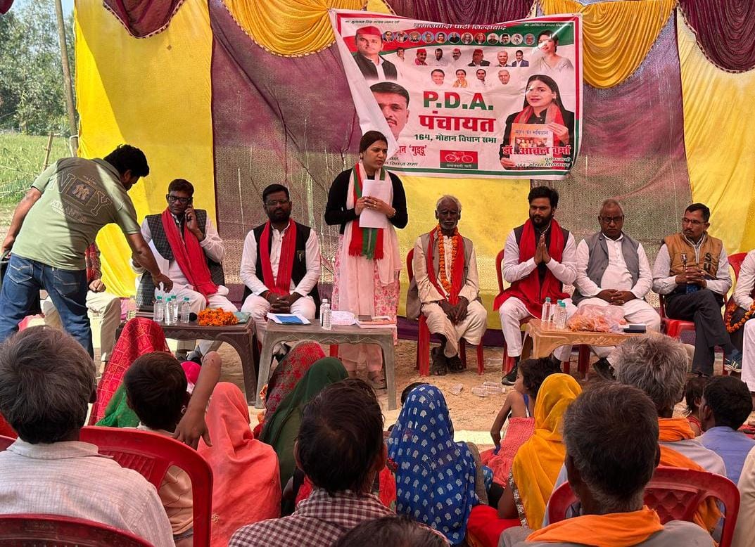 उन्नाव।नवाबगंज क्षेत्र में पीडीए के नेता मा. अखिलेश यादव के आवाह्न पर निरंतर 164 मोहान विधानसभा की पूर्व प्रत्याशी डॉ आंचल वर्मा व विधानसभा अध्यक्ष अशोक सिंह चौहान के नेतृत्व में पीडीए पंचायत कार्यक्रम का सफल आयोजन सेक्टर 26 भौली के ग्राम बरईयन खेड़ा व सेक्टर 37 जोगासराय के ग्राम कटेहरु में विधानसभा महासचिव लोहिया वाहिनी किशन विश्वकर्मा व उमेश कश्यप बूथ प्रभारी ने किया कार्यक्रम की अध्यक्षता मोतीलाल गौतम व राम आसरे कश्यप ने किया। कार्यक्रम में उपस्थित विधानसभा मोहान समाजवादी पार्टी की पूर्व प्रत्याशी डॉ आंचल वर्मा ने कहा बाबा साहब भीम राव अम्बेडकर जी के सपने को साकार करने के लिए सभी जाती के पिछड़े लोगों को एकजुट होकर पीडीए व समाजवादी पार्टी को मजबूत बनाना है।कार्यक्रम में मुख्य रूप से नि. राष्ट्रीय सचिव छात्रसभा राहुल यादव जी, जिला सचिव शिवसिंह चौहान कार्यक्रम का संचालन विधानसभा उपाध्यक्ष संतराम यादव ने किया, पवन कुमार, अनुपम वर्मा विधानसभा उपाध्यक्ष, बसंत लाल गौतम , छमा दास गौतम छोटे लाल कश्यप , शिवशंकर यादव , राजाराम कश्यप , भरोसेलाल कश्यप , राधेलाल कश्यप , कल्लू गौतम , तारबहादुर सिंह , राधेलाल गौतम , रामप्रताप सिंह जिला सचिव शिक्षक सभा, राजा गौतम राजा तिवारी , दीपू गौतम , अखिलेश शर्मा , उदयभान सिंह बब्लू, विनोद मौर्या व संदीप यादव जोनल प्रभारी सहित सैकड़ों समाजवादी कार्यकर्ता उपस्थित रहे।