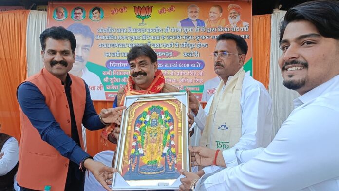 एवं उनके द्वारा लंबे समय से गंगा पुल को लेकर किए जा रहे प्रयत्न सफल हुए और विधानसभा में उनके द्वारा रखे गए प्रस्ताव गंगा पुल निर्माण जिसकी सराहना एवं समर्थन के साथ पिछले दो दिन पूर्व गंगा पुल की जगह चिन्हित कर गंगापुल निर्माण का कार्य बहुत जल्द ही प्रारंभ हो जाएगा उनके द्वारा विगत 5 वर्षों से किया जा रहे कार्यों की प्रशंसा में कल एक बहुत ही बड़ी भव्य अभिनंदन सभा का आयोजन शुक्लागंज की जनता द्वारा किया गया ठीक उसी क्रम में आज उन्नाव शहर के पूरा नगर मोहल्ले में स्थित शारदा कुंज रिजॉर्ट के समीप राधेश्याम शुक्ला द्वारा सदर विधायक पंकज गुप्ता जी का सम्मान किया गया कार्यक्रम में उनके साथ सनातन की परंपरा को निरंतर आगे बढ़ाने वाले हिंदू जागरण मंच के संस्थापक विमल द्विवेदी भी उपस्थित रहे जिसमें मुख्य रूप से प्रदीप सिंह,अतुल तिवारी, रामबाबू चौरसिया, सुरेश सिंह, अमित शुक्ला एवं अन्य पूरन नगर एवं लोक नगर वासियों द्वारा उनका माल्याअर्पण कर स्वागत एवं अभिनंदन किया गया है।