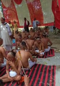 उन्नाव ।बांगरमऊ नगर के पश्चिमी छोर स्थित ऐतिहासिक बाबा बोधेश्वर महादेव मंदिर प्रांगण में सुंदरेश्वरी सेवा समिति भड़सर नौशहरा के तत्वावधान में आज सोमवार को सामूहिक यज्ञोपवीत संस्कार का आयोजन किया गया। आयोजन में समिति के संरक्षक एवं स्थानीय संस्कृत विद्यालय के पूर्व प्राचार्य पंडित शशि नाथ अवस्थी ने अपने सहयोगी आचार्यों द्वारा 111 बटुकों का संस्कार संपन्न कराया गया।