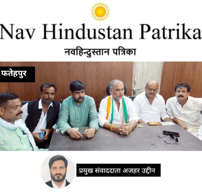 पत्रकारों से बातचीत करते कांग्रेस जिलाध्यक्ष महेश द्विवेदी व शहर अध्यक्ष मो0 आरिफ गुड्डा।