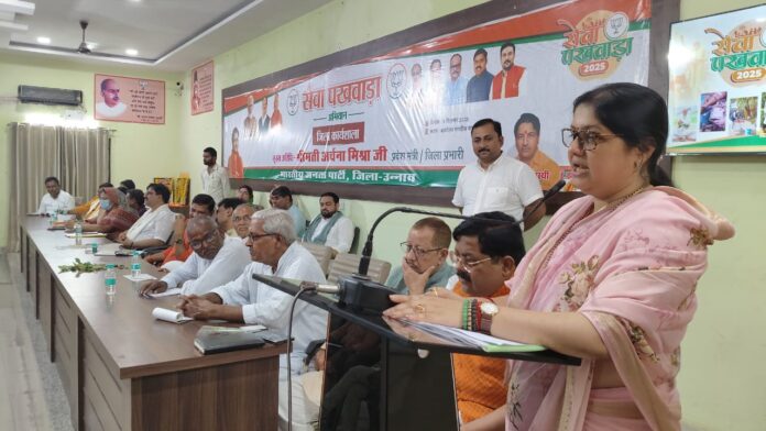 उन्नाव।भाजपा एक राजनीतिक दल के नाते राष्ट्र प्रथम की भावना के साथ राजनैतिक क्षेत्र में काम करती है। लेकिन हमारा दूसरा पहलू जनसेवा का है। भाजपा कार्यकर्ता जनसेवा और रचनात्मक कार्यों में बढ़-चढकर हिस्सा लेते है। मोदी जी के जन्मदिन 17 सितंबर से लेकर 02 अक्टूबर गांधी जी एवम लाल बहादुर शास्त्री जी की जयंती तक आयोजित सेवा पखवाड़ा मनाया जाएगा। यह बात जिला प्रभारी उन्नाव व प्रदेश मंत्री भाजपा अर्चना मिश्रा ने भाजपा कार्यालय पर आयोजित कार्यशाला में कही।