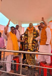 उन्नाव।जनपद उन्नाव के अब्बासपुर में नानू बाबा मेले व पूर्व मुख्यमंत्री कल्याण सिंह जी की प्रतिमा स्थापना दिवस के शुभ अवसर पर सदर विधायक पंकज गुप्ता, बांगरमऊ विधायक श्रीकांत कटियार व नर सेवा नारायण सेवा के संस्थापक व भाजपा नेता विमल द्विवेदी ने पूज्य संत नांहू बाबा की समाधी में माथा टेकने के बाद पूर्व मुख्यमंत्री स्वर्गीय कल्याण सिंह जी की प्रतिमा पर माल्यार्पण व पुष्प अर्पित कर उन्हें श्रद्धांजलि दी।पंकज गुप्ता ने कहा कि बाबू कल्याण सिंह जी का सनातन संस्कृति व सनातन धर्म के साथ करोड़ों हिंदुओं की आस्था के प्रतीक श्रीराम मंदिर बनने में अहम भूमिका रही है।उनके त्याग को हम सब भुला नहीं सकते।