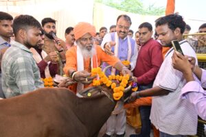 संसद डा. सच्चिदानंद हरि साक्षी महाराज के आवासीय परिसर मे स्थापित शहीद गुलाब सिह लोधी की प्रतिमा पर माल्यार्पण किया और