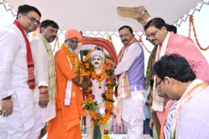 संसद डा. सच्चिदानंद हरि साक्षी महाराज के आवासीय परिसर मे स्थापित शहीद गुलाब सिह लोधी की प्रतिमा पर माल्यार्पण किया और