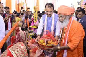 परिसर में एक पेड़ मां के नाम पर वृक्षारोपण किया। इस अवसर पर उपमुख्यमंत्री जी ने दिव्यागजनो को ट्राईसाइकिल वितरण, समूहो की दीदियो को प्रशस्ति पत्र, वितरित किये। ततपश्चात गर्भवती महिलाओं की गोद भराई की व नवजात बच्चों को अन्नप्रासन कर बच्चों के उत्तम स्वास्थ्य की कामना किया । माननीय उप मुख्यमंत्री जी ने शहीद गुलाब सिंह लोधी के प्रति अपनी भावपूर्ण आत्मिक श्रद्धांजलि अर्पित कर स्वतंत्रता आंदोलन में उनके योगदान की सराहना किया ।