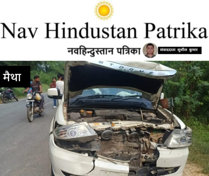 शिवली,कानपुर देहात। बीच सड़क पर अचानक नील गाय आ जाने से टकराई टाटा सफारी कार बाल बाल बचे गोल्डन बाबा। शनिवार की दोपहर शिवली रसूलाबाद मार्ग पर सहतावनपुरवा गांव के सामने पिपलेश्वर धाम के महंत गोल्डन बाबा की कार एक नील गाय से टकरा गई जिसमें कार सवारों के बीच अफरातफरी मच गई। वहीं नील गाय की मौके पर मौत हो गई एक युवक मामूली रूप से घायल हो गया। सूचना पर पहुंची पुलिस ने घायल को शिवली सीएचसी भेजा जहां प्राथमिक उपचार के बाद उसे घर भेज दिया गया है।
