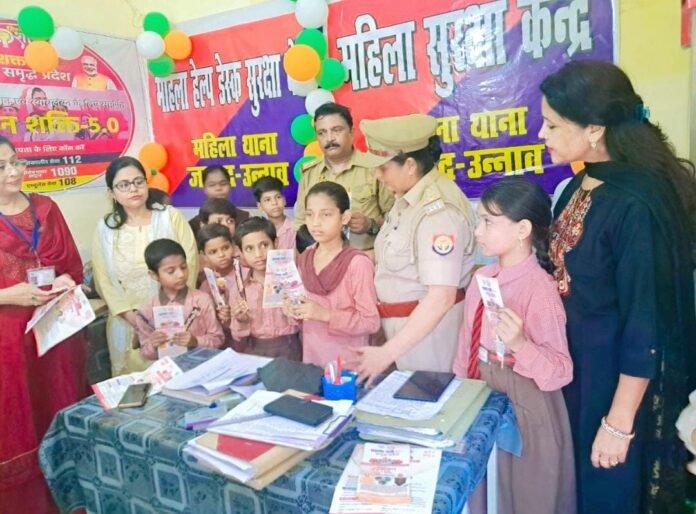 उन्नाव।महिलाओं की सुरक्षा ,सम्मान एवं स्वावलंबन के लिए चलाए जा रहे अभियान मिशन शक्ति फेज 5.0 के अंतर्गत आज प्राथमिक विद्यालय पुलिस लाइन के बच्चों को एस आर जी डाॅ रचना सिंह के संयोजन में महिला थाना का भ्रमण करवाया गया । महिला थाना प्रभारी रेखा सिंह ने उन्होंने बालिकाओं तथा महिलाओं के लिए सरकार द्वारा चलाई जा रही योजनाओं की जानकारी दी , बच्चों को एफ आई आर दर्ज कराने का तरीका बताया। आज जी आर एस की भी जानकारी दी गई। पुलिस कंट्रोल रूम प्रभारी सीनियर सब इंस्पेक्टर अनूप मिश्रा ने बच्चों को थानों , पुलिस कंट्रोल रूम और 112 की कार्यप्रणाली के बारे में बताया। बच्चों को महिला हेल्पडेस्क और शस्त्रों के बारे में बताया गया। इस दौरान, बच्चों को यातायात नियमों, महिला अधिकारों और साइबर अपराधों के बारे में भी जागरूक किया गया, जिससे उनमें पुलिस और कानून के प्रति सम्मान और समझ की भावना विकसित हो सके। छात्राओं ने अपनी जिज्ञासा के अनुसार पुलिस कर्मियों से विभिन्न प्रश्न पूछे, जिनका महिला थाना प्रभारी रेखा सिंह और पुलिस कंट्रोल रूम प्रभारी अनूप मिश्रा ने जवाब देकर छात्राओं को जागरूक किया। इस अवसर पर बच्चों को हेल्पलाइन नंबरों की जानकारी देकर कहा गया कि जरूरत पड़ने पर इनका प्रयोग करें पुलिस सहायता तुरंत आपके पास होगी। बच्चों के साथ एस आर जी डॉ रचना सिंह, मुसर्रत फातिमा,विद्यालय की शिक्षिका नूपुर श्रीवास्तव उपस्थित रहीं।