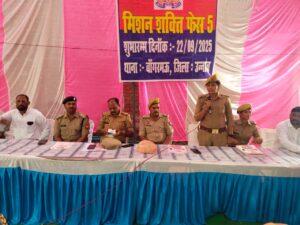 उन्नाव।उन्नाव मिशन शक्ति अभियान के पंचम चरण के तहत ग्राम ऑलमोसराय में एक चौपाल का आयोजन किया गया। इस कार्यक्रम में श्री प्रेमचंद अपर पुलिस अधीक्षक दक्षिणी और श्री चंद्रकान्त सिंह प्रभारी निरीक्षक बांगरमऊ ने मय मिशन शक्ति टीम के साथ भाग लिया।