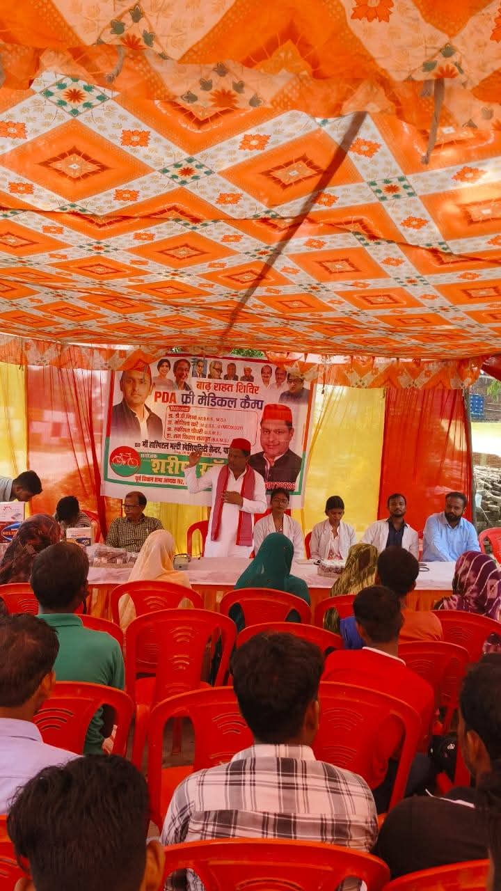 इस बाढ़ राहत शिविर में बड़ी संख्या में प्रभावित ग्रामीण शामिल हुए। कैंप में उपस्थित मरीज़ों को तत्काल चिकित्सकीय जांच और दवाइयों की सुविधा उपलब्ध कराई गई। इस अवसर पर लखनऊ से आए वरिष्ठ चिकित्सक डॉ. डीपी मिश्रा (एमबीबीएस, एमडी) एवं डॉ. मोनिशा खरे (एमबीबीएस, गायनेकोलॉजी) के -साथ अन्य डॉक्टरों की टीम ने मरीज़ों की स्वास्थ्य जांच की। टीम द्वारा मरीज़ों को आवश्यक परामर्श, खून की जांच के लिए ब्लड सैंपल लेकर दवाइयाँ भी नि:शुल्क वितरित की गईं। इस अवसर पर शरीफ़ ख़ान ने कहा कि जनसेवा ही सबसे बड़ा धर्म है। यह पहल केवल चिकित्सा सहायता उपलब्ध कराने तक सीमित नहीं है, बल्कि इसका उद्देश्य बाढ़ से प्रभावित लोगों के जीवन में भरोसा और राहत पहुँचाना भी है। हमारा संकल्प है कि विपरीत परिस्थितियों में भी हर ज़रूरतमंद तक मदद पहुँचाई जाए और कोई भी व्यक्ति असहाय महसूस न करे। उन्होंने आगे ये भी कहा कि समाजवादी पार्टी के नेतृत्व में यह प्रयास लगातार जारी रहेगा और भविष्य में भी ऐसे राहत कार्यों का आयोजन कर पीड़ितों की सेवा की जाएगी। मेडिकल कैंप में बड़ी संख्या में महिलाओं, बच्चों और बुज़ुर्गों ने हिस्सा लिया। स्थानीय निवासियों ने इस आयोजन को अत्यंत सराहनीय बताते हुए कहा कि बाढ़ की कठिन परिस्थितियों में यह चिकित्सा सेवा उनके लिए जीवन रक्षक साबित हुई है। यह राहत कैंप न केवल समाजवादी पार्टी की संवेदनशीलता और जनता के प्रति समर्पण को दर्शाता है, बल्कि यह भी सिद्ध करता है कि पार्टी हमेशा जनता के साथ खड़ी है। शरीफ़ ख़ान ने विश्वास दिलाया कि समाज के हर वर्ग की सेवा के लिए वे निरंतर तत्पर रहेंगे। बाढ़ जैसी विपरीत परिस्थितियों में भी हर संभव सहायता उपलब्ध कराने के लिए प्रयासरत रहेंगे। इस अवसर पर टीम शरीफ खान के गणमान्य सदस्य उपस्थित रहे।