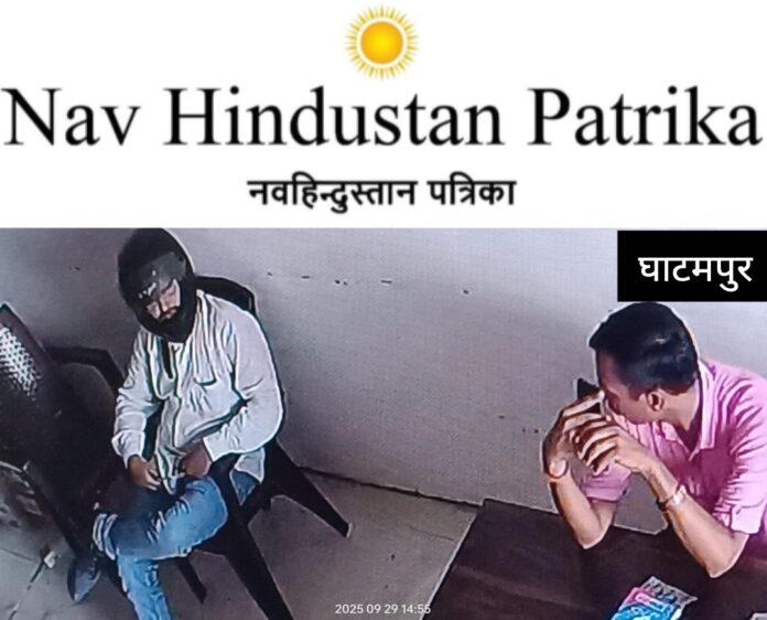 संवाददाता,घाटमपुर। कस्बा के अशोक नगर दक्षिणी निवासी शिवहरे सिंह ने पुलिस को तहरीर देकर बताया कि परमार ब्रदर्स एंड इंटरप्राइजेज के नाम से फ्लाई ओवर के पास उनकी कैंपा पेय पदार्थ की दुकान है! सोमवार दोपहर एक बजे एक अज्ञात व्यक्ति होंडा साइन बाइक से दुकान पर आया और अपने घाटमपुर थाने में तैनात पुलिस कर्मी बताकर 10 पेटी पानी की मांग की, तभी शिवहरे सिंह ने दुकानकर्मी से नीचे गोडाउन से पानी लाने को कहा इसी बीच युवक ने शिवहरे सिंह को बातचीत में उलझाकर रस्सी न लाने की भूल का बहाना बनाते हुए तबियत खराब होने व चक्कर आने का नाटक करके जेब से 500 की नोट निकालकर शिवहरे सिंह को हार्डवेयर की दुकान रस्सी लेने भेज दिया जैसे ही शिवहरे सिंह रस्सी लेने गए इसी दौरान अज्ञात युवक ने दुकान के काउंटर का गोलक तोड़कर बंधी रकम एक लाख बीस हजार साथ ही दराज में रखे बैग में बत्तीस हजार रुपयों का बैग लेकर फरार हो गया रस्सी लेकर दुकान लौटने पर शिवहरे सिंह ने देखा कि उक्त युवक बाइक सहित मौके से फरार हो गया खाली गोलक देखकर शिवहरे सिंह के होश उड़ गए! उक्त घटना दुकान में लगे सीसीटीवी में कैद हो गई है! घटना की सूचना शिवहरे सिंह ने घाटमपुर पुलिस से की है! घाटमपुर इंस्पेक्टर धनंजय कुमार पांडेय ने बताया कि सूचना मिली है घटना की सूचना मिली है। जांच पड़ताल की जा रही है जल्द ही आरोपी को गिरफ्तार किया जाएगा।