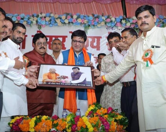 समारोह के प्रारम्भ में समिति के अध्यक्ष विकास गुप्ता के नेतृत्व में मन्त्री नितिन अग्रवाल का स्वागत किया गया।