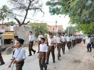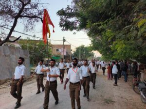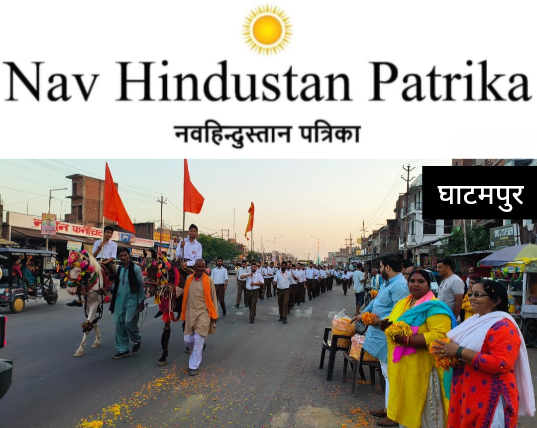 घाटमपुर में आरएसएस का विराट पथ संचालन, दो किमी.लंबी पद यात्रा निकली, विधायक सरोज कुरील ने यात्रा में पुष्प की वर्षा