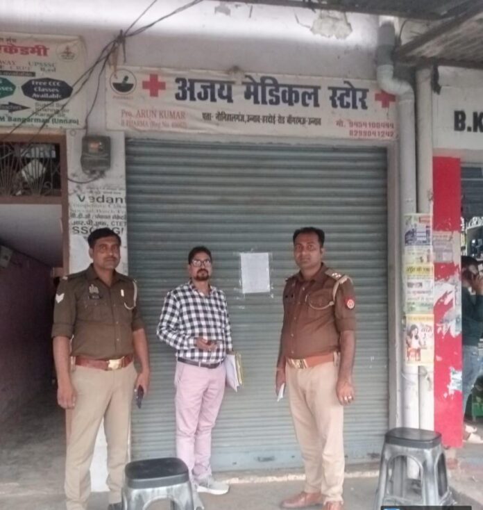 उन्नाव।जिले में कोडीन युक्त कफ सिरप का खुलासा होने के बाद औषधि निरीक्षक ने बुधवार को बांगरमऊ पहुंचकर अजय मेडिकल स्टोर पर निरीक्षण किया। जिस दौरान दुकान बंद मिली औषधि निरीक्षक द्वारा दुकान पर नोटिस चश्पा कर कार्रवाई की गई। औषधि निरीक्षक के अनुसार उक्त दुकानदार द्वारा भी लखनऊ की फर्म से कोडिन युक्त सीरप की खरीद की गई है।