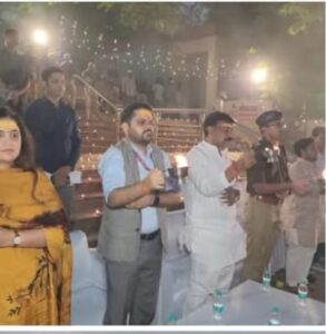 उन्नाव।आज जिलाधिकारी श्री गौरांग राठी जी व माननीय सदर विधायक श्री पंकज गुप्ता जी की गरिमा मयी उपस्थित में आंनद घाट शुक्ला गंज में दीपोत्सव/ दीपदान कार्यक्रम के अवसर पर गंगा उत्सव कार्यक्रम भव्य आयोजन किया गया । कार्यक्रम का शुभारंभ माननीय विधायक जी वह जिलाधिकारी जी द्वारा दीप प्रज्वलन कर किया गया । कार्यक्रम में सांस्कृतिक कार्यक्रमों के साथ गंगा महा आरती और दीपदान किया गया। कार्यक्रम की शुरुआत गंगा स्वच्छता जागरूकता रैली घाट की साफ सफाई से हुई इसके बाद गंगा कथा लोकगीत रंगोली और चित्रकला प्रतियोगिता सहित कई सांस्कृतिक गतिविधियां आयोजित हुई। घाट पर स्कूली छात्रों और स्थानीय लोगों ने मिलकर 2100 दीपों की अद्भुत रंगोली सजाई और नमामि गंगे की सुंदर आरेखीय आकृति बनाई । इस अवसर ओर प्रतियोगिताओं में बेहतर प्रदर्शन करने वाले लगभग 30 प्रतिभागियों को जिलाधिकारी जी व माननीय विधायक जी द्वारा सम्मानित भी किया गया। कार्यक्रम को संबोधित करते हुए जिलाधिकारी ने कहा कि हमारे भारत देश में दीपदान दीपोत्सव का बहुत महत्व है हर वर्ष की बात इस वर्ष भी भव्यता के साथ गंगा तट पर दीपोत्सव / दीपदान का कार्यक्रम किया गया है। गंगा निर्मल और स्वच्छ होकर अविरल बहती रहे यही हम सबका परम कर्तव्य है इसको मैली ना होने दे इसमें सभी लोगों की सहभागिता आवश्यक है ।जिलाधिकाती ने कहा कि गंगा का हमारे देश में पौराणिक महत्व है इसको किस प्रकार अविरल बनाए रखें इसके लिए सांस्कृतिक कार्यक्रम जागरूकता कार्यक्रम आयोजित कर लोगों को जागरूक किया जा रहा है। कार्तिक पूर्णिमा की पूर्व संध्या पर हर वर्ष की भांति इस वर्ष भी गंगा तट पर गंगा उत्सव का भव्य कार्यक्रम आयोजित हुआ हैं । माननीय विधायक श्री पंकज गुप्ता जी ने कहा कि दीपोत्सव और दीपदान हिन्दू धर्म मे हमारे सनातन धर्म की परंपरा रही है ।गंगा पौराणिक है यदि गंगा नहीं है तो हम भी नहीं है गंगा मोक्षदायिनी है यह हमें जीवन भी देती है मोक्ष भी देती है रोजगार भी देती है इसको स्वच्छ निर्मल और अविरल बनाए रखना ही हमारा परम उद्देश्य है इस विचारधारा से हम सबको मिलकर गंगा को अविरल बनाना होगा । इस अवसर पर माननीय विधायक जी श्री पंकज गुप्ता जी जिलाधिकारी श्री गौरांग राठी जी चेयर मैन नगर पालिका ने मां गंगा के विधिवत पूजन अर्चन के साथ गंगा महाआरती किया।