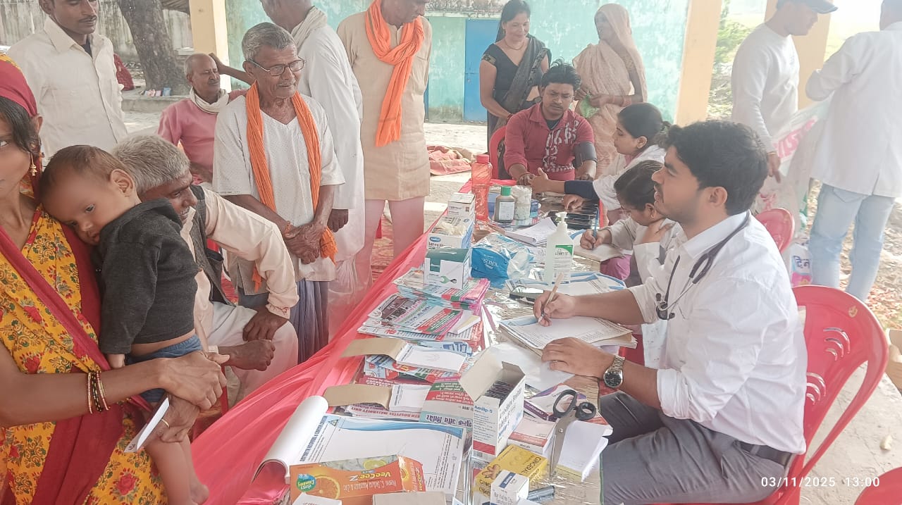 असोहा, उन्नाव।आज मंगलवार सुबह 10 बजे से 3 बजे तक सत्यार्थ हास्पिटल एण्ड कैंसर सेंटर के द्वारा मां पथवारी देवी मंदिर प्रांगण में निःशुल्क स्वास्थ्य कैम्प लगाकर निःशुल्क लगभग 130 लोगो को दवा दी गई,जिसमें शुगर ब्लड प्रेशर व अन्य जांच की गयी।