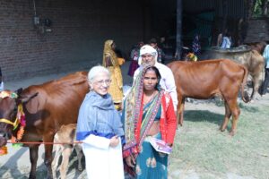 उन्नाव।पूर्व सांसद अन्नू टंडन ने अपने पति स्व संदीप टंडन जी की 76 वीं जयंती पर श्रद्धांजलि अर्पित करते हुए जिले की निर्धन विधवा पात्र रमा रावत, रीता लोधी, सरला पाल, गुड़िया कुशवाहा, शिखा पांडे, गीता राठौर,सविता पाल को जीविकोपार्जन हेतु दुधारू गायें दान कीं। इनमें से कुछ महिलाओं के पति की मृत्यु पिछले एक वर्ष में हुई थी जबकि कुछ के पति कई वर्ष पूर्व गुजर चुके थे जिससे नाबालिग बच्चों सहित परिवारों के भरण-पोषण में कठिनाई उत्पन्न हो गई थी।