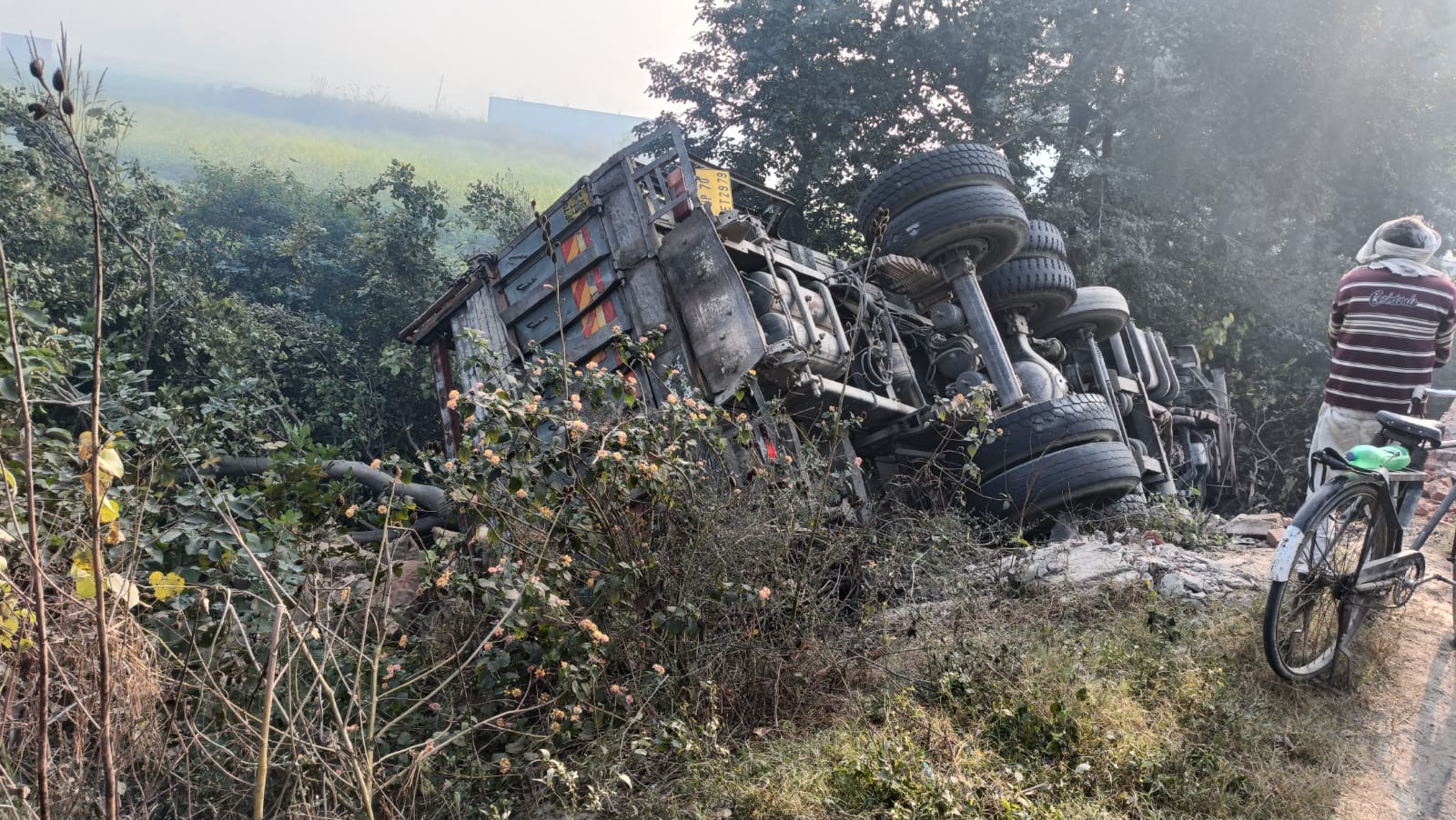 बांगरमऊ उन्नाव ।कोतवाली क्षेत्र में उन्नाव-हरदोई मार्ग पर रविवार को एक आलू लदा ट्रक अचानक अनियंत्रित होकर पलट गया। हादसे में चालक को मामूली चोटें आईं।चालक पप्पू पुत्र चौबे फर्रूखाबाद से आलू की बोरियां लादकर जिला सुल्तानपुर जा रहा था। तभी रास्ते में आज रविवार की दोपहर कोतवाली क्षेत्र में उन्नाव मार्ग पर स्थित ग्राम भिखारीपुर रुल्ल की पुलिया के निकट अचानक तेज रफ्तार ट्रक अनियंत्रित होकर सड़क के किनारे स्थित गहरी खाई में पलट गया। सड़क से गुजर रहे अन्य वाहन चालकों और ग्रामीणों ने चालक को किसी तरह ट्रक के केविन से बाहर निकाला। हादसे में चालक को मामूली चोटें आईं।