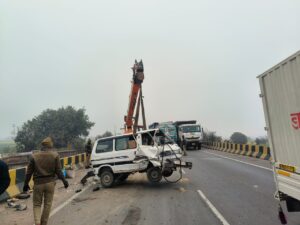 संवाददाता,घाटमपुर। थाना क्षेत्र के पतारा में शुक्रवार दोपहर भीषण सड़क हादसा हो गया। कानपुर-सागर हाईवे रिंद नदी पुल पर ओमिनी वैन और वैन ऑटो की आमने-सामने जोरदार भिड़ंत हो गई। टक्कर इतनी जोरदार थी, कि दोनों वाहनों के परखच्चे उड़ गए और मौके पर चीख-पुकार मच गई। हादसे में ऑटो और वैन में सवार करीब आधा दर्जन सवारियां घायल हो गईं,पुलिस ने घायलों को बिधनू सीएचसी पहुंचाया जहां डाक्टर ने प्राथमिक उपचार कर गंभीर घायलों को जिलास्पताल रेफर कर दिया। घाटमपुर थाना क्षेत्र के धरमपुर बंबा स रिंद नदी पुल पर ओमिनी वैन और ऑटो की आमने सामने भिड़ंत हो गईं। हादसे के बाद हाईवे पर वाहनों की लंबी कतारें लग गई! कुछ देर के लिए यातायात पूरी तरह बाधित हो गया। राहगीरों ने घटना की सूचना पर मौके पर पहुंची पतारा चौकी पुलिस ने राहगीरों की मदद से घायलों को वाहनों से बाहर निकलवाया और एंबुलेंस की मदद से सभी घायलों को बिधनू सामुदायिक स्वास्थ्य केंद्र भेजा, जहां डॉक्टर ने सभी घायलों को प्राथमिक उपचार करने के साथ तीन गंभीर घायलों को कानपुर जिलास्पताल रेफर कर दिया। हादसे में अच्छेलाल गुप्ता, राज, प्रदीप कुमार, दीपक, महेश कुमार सविता , दिलीप,अनुराग घायल हो गए। डॉक्टर ने तीन को गंभीर हालत में कानपुर जिलास्पताल रेफर कर दिया।हादसे के बाद कानपुर-सागर हाईवे पर लगा लंबा जाम,पुलिस ने क्रेन की मदद से क्षतिग्रस्त वाहनों को सड़क किनारे करवाया और धीरे-धीरे यातायात बहाल कराया।