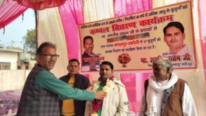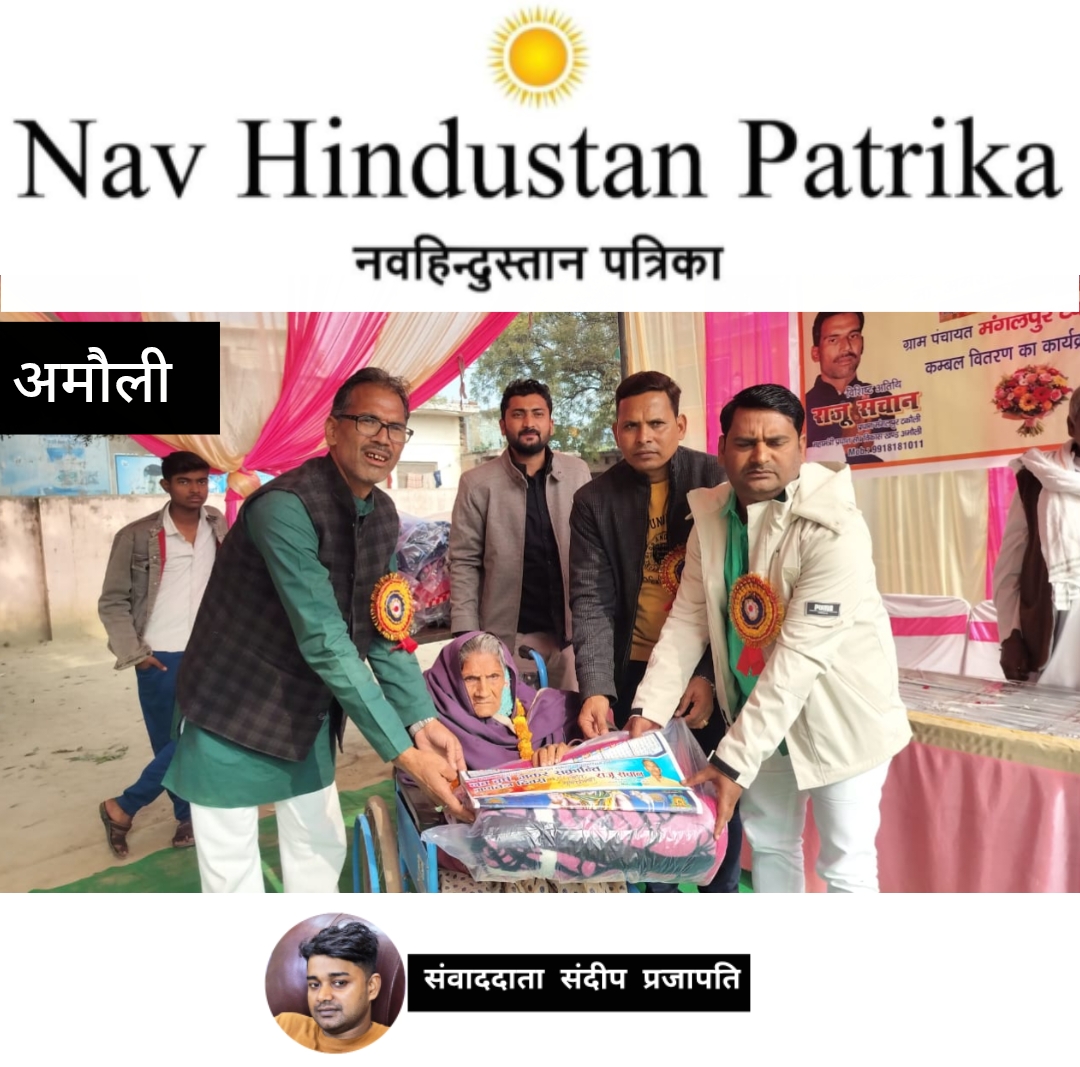 अमौली,फतेहपुर। विकासखंड के अंतर्गत ग्राम सभा मंगलपुर टकौली में जिला पंचायत सदस्य और ग्राम प्रधान ने ठंड से निजात पाने के लिए 101 बुजुर्ग महिलाओं एवं पुरुषों को सम्मानित कर कम्बल वितरित किया।कार्यक्रम में पहुंचे अकबरपुर नसीरपुर क्षेत्र के जिला पंचायत सदस्य अमरीश उत्तम तथा मंगलपुर टकौली ग्राम प्रधान राजू सचान ने कड़ाके की ठंड के चलते 60 वर्ष व उससे अधिक उम्र के 101 बुजुर्गों को कम्बल बांटे। तथा सभी बुजुर्गों का आशीर्वाद लेकर उनको नए वर्ष की शुभकामनाएं दी। ज़िला पंचायत सदस्य अमरीश उत्तम ने बताया हमारे क्षेत्र अंतर्गत कोई भी ऐसी ग्राम सभा नहीं है। जहां मैंने काम न किया हो। वही ग्राम प्रधान राजू ने बताया मुझे इस ग्राम सभा के लोगों ने लगातार दो पंचवर्षीय से आशीर्वाद दिया है।इस मौके पर कार्यक्रम के मुख्य अतिथि अकबरपुर नसीरपुर ज़िला पंचायत सदस्य अमरीश उत्तम,टकौली ग्राम प्रधान राजू सचान, नोनारा प्रधान प्रतिनिधि राजेश उत्तम,पूर्व प्रधान देश नारायण सचान,बिरनई प्रधान श्रीकांत उत्तम,डा०अनूप सचान,राम गुलाम प्रजापति, शिवगोपाल गोस्वामी, महादेव प्रजापति सहित सैकड़ों की संख्या में ग्रामीण उपस्थित रहे।