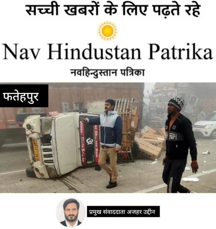फतेहपुर। मलवां थाना क्षेत्र के सौंरा एनएच 2 में शनिवार की सुबह घने कोहरे के कारण हाइवे किनारे के खडे़ ट्रेलर में पीछे से आ रही पिकअप सहित सात वाहन टकरा गये। जिसमें रोडवेज बस अरटिका शामिल है। जिसमें 17 किशोर की मौके में मौत हो गयी जबकि मां सहित आधा दर्जन लोग घायल हो गये। गंभीर रूप से घायल दो लोगो को जिला अस्पताल लाया गया। जहां महिला की हालत गंभीर देख कानपुर के लिए रेफर कर दिया गया। वहीं रोड़वेज बस में सवार युवक घायल हो गया। जानकारी के अनुसार शनिवार की सुबह घना कोहरा होने के कारण जहां ंवाहनों की रफ्तार धीमी हो गयी। वहीं मलवां थाने के सौंरा एनएच 2 में हाइवे किनारे खडे़ ट्रेलर में पीछे से आ रही पिकअप जा घुसी उसके बाद अरटिका व बस सहित आधा दर्जन से अधिक वाहन