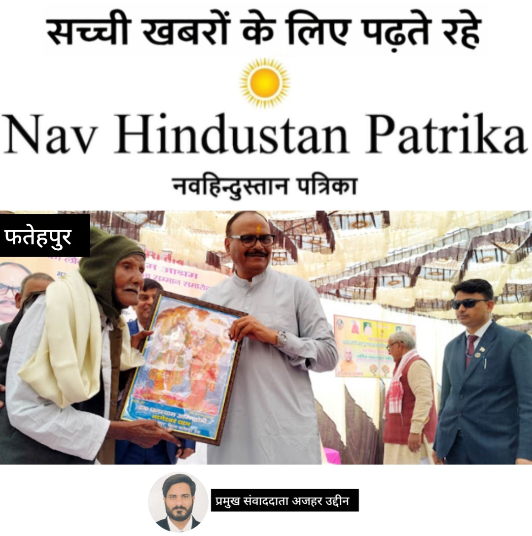 फतेहपुर। मेरा गांव, मेरा तीर्थ कार्यक्रम तहसील बिन्दकी अंतर्गत विकास खंड खजुहा के ग्राम हिम्मतपुर, पोस्ट अजमतपुर श्री नागेश्वर धाम आश्रम का उप मुख्यमंत्री बृजेश पाठक ने लोकार्पण शिलापट्ट का अनावरण करके किया। इसके पश्चात नागेश्वर धाम आश्रम में वैदिक रीति रिवाज दर्शन पूजन किया। कार्यक्रम का शुभारम्भ दीप प्रज्जवलित कर मां सरस्वती जी व भारत माता के चित्र पर माल्यार्पण कर किया। कार्यक्रम में ग्राम में उत्कृष्ट कार्य करने वाले प्रतिभाओं को अंगवस्त्र व स्मृति चिन्ह देकर सम्मानित किया गया। कार्यक्रम को संबोधित करते हुए डिप्टी सीएम ने कहा कि मेरा गांव, मेरा तीर्थ कार्यक्रम प्रेरणादायी है इससे प्रेरित होकर अपने गांव को,कार्यक्रम के दौरान बुजुर्ग का सम्मान करते डिप्टी सीएम बृजेश पाठक।