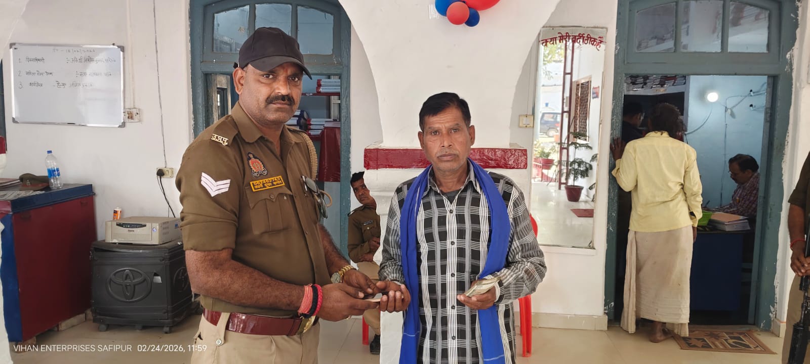 उन्नाव।सफीपुर कोतवाली क्षेत्र के अंतर्गत गौरी के पास हुए एक दर्दनाक सड़क हादसे में घायल युवक की उपचार के दौरान मौत हो गई। इस दुखद घटना के बीच सफीपुर पुलिस का एक बेहद ईमानदार और मानवीय चेहरा सामने आया है, जिसकी पूरे जनपद में सराहना हो रही है। गौरी के पास सड़क दुर्घटना में बसंत (पुत्र मंगल) गंभीर रूप से घायल हो गए थे। सूचना मिलते ही दीवान अंजनी पाण्डेय और सुनील कुमार तत्काल मौके पर पहुँचे और घायल को एम्बुलेंस की मदद से सफीपुर CHC पहुँचाया। हालत गंभीर होने के कारण चिकित्सकों ने घायल को जिला अस्पताल रेफर किया, जहाँ इलाज के दौरान बसंत ने दम तोड़ दिया। हादसे के समय मौके से पुलिस को बसंत के ₹20,000 नकद और उसका मोबाइल फोन बरामद हुआ था। सफीपुर पुलिस ने पूरी पारदर्शिता बरतते हुए यह अमानत मृतक के पिता को सुरक्षित सुपुर्द कर दी। जहाँ एक ओर परिवार इस अपूरणीय क्षति से दुखी है, वहीं संकट की इस घड़ी में पुलिस द्वारा दिखाई गई तत्परता और ईमानदारी की स्थानीय लोगों ने जमकर प्रशंसा की है। सफीपुर पुलिस ने साबित किया है कि खाकी केवल सुरक्षा ही नहीं, बल्कि मानवता का भी प्रतीक है।
