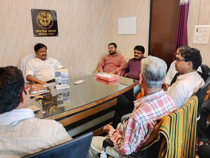 बांगरमऊ, उन्नाव।नसिरापुर स्थित बी आर सी बाँगरमऊ में उत्तर प्रदेशीय प्राथमिक शिक्षक संघ बांगरमऊ ब्लॉक इकाई के नवनियुक्त अध्यक्ष सुदीप सचान के नेतृत्व में संगठन के प्रतिनिधि मंडल ने खंड शिक्षा अधिकारी बाँगरमऊ देवेंद्र सिंह पटेल से शिष्टाचार भेंट की तथा विकासखंड की शिक्षक समस्याओं पर सकारात्मक चर्चा की गयी। इस अवसर पर रजनीश कटियार, विजयपाल सिंह पटेल, जमाल अहमद, अवधेश कुमार, ठाकुर प्रसाद, कौशलेन्द्र पाल, सर्वेश रावत, रोहित कन्नौजिया आदि उपस्थित रहे।