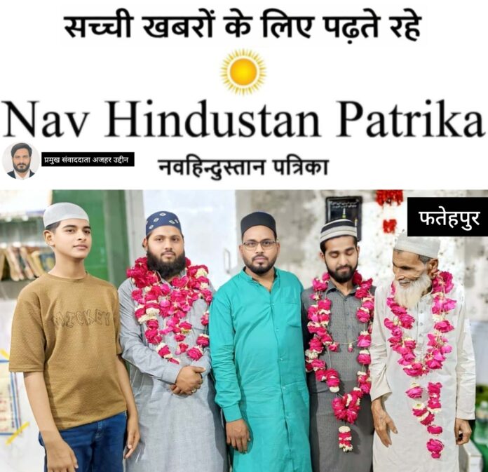 हथगाम, फतेहपुर, विकास खण्ड के आरामशीन शाहपुर स्थित मस्जिद राउफिया रशीदिया में रमजानुल मुबारक के मौके पर चल रही तरावीह की नमाज में कुरआन पाक मुकम्मल हुआ। कुरआन पाक मुकम्मल होने पर हाफिज गुलाम गौस रहमानी का नमाजियों ने फूल-माला पहनाकर व उपहार भेंटकर इस्तकबाल किया। तत्पश्चात मुल्क में अमन-चैन की दुआएं की गई। बताते चलें कि रमजानुल मुबारक को पाक महीना कहा जाता है। यह महीना बरकतों का है। इस महीने के पहले अशरे को रहमत का अशरा कहा जाता है, जिसमें इबादत, रोजा, तरावीह और कुरआन पाक की तिलावत का विशेष महत्व होता है। आरामशीन शाहपुर में सईद नगर जामा मस्जिद रऊफिया रशीदिया में तरावीह की शक्ल में कुरआन पाक मुकम्मल हुई। कुरआन पाक सुनाने वाले हाफिज