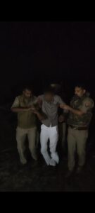 घायल बकरी चोर को लेकर जाती पुलिस।