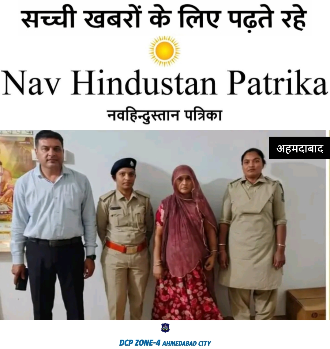 अहमदाबाद। शहर में कानून व्यवस्था बनाए रखने के लिए चलाए जा रहे अभियान के तहत डीसीपी ज़ोन-4 की टीम ने एक सराहनीय कार्रवाई करते हुए तड़ीपार घोषित महिला को गिरफ्तार किया है। कृष्णानगर पुलिस की इस कार्रवाई को महत्वपूर्ण सफलता माना जा रहा है।