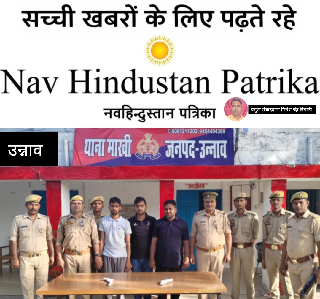 उन्नाव।वरिष्ठ पुलिस अधीक्षक उन्नाव के कुशल निर्देशन एवं अपर पुलिस अधीक्षक दक्षिणी व क्षेत्राधिकारी सफीपुर के कुशल पर्यवेक्षण में अपराध एंव अपराधियों के विरूद्ध चलाये जा रहे अभियान के क्रम मे थाना माखी पुलिस द्वारा फायरिंग कर युवक को घायल करने वाले तीन आरोपियों को कब्जे से 02 अदद तमंचा 315 बोर व 01 अदद कारतूस खोखा 315 बोर व एक अदद क्रेटा कार बरामद कर गिरफ्तार किया गया। थाना माखी क्षेत्रांतर्गत ग्राम कुटरा के रहने वाले मनोज शुक्ला पुत्र पुत्तूलाल शुक्ला को अभियुक्तगण 1. सौरभ सिंह पुत्र स्व0 शेर बहादुर सिंह उम्र 33 वर्ष 2. दीपक सिंह पुत्र रामबहादुर सिंह उम्र 31 वर्ष 3. अमन सिंह उर्फ आदित्य प्रताप सिंह पुत्र विजय बहादुर सिंह उम्र 23 वर्ष निवासीगण ग्राम कुटरा थाना माखी जिला उन्नाव के द्वारा जान से मारने की नियत से तमंचे से फायर कर घायल कर दिया था। जिसके सम्बन्ध में थाना माखी पर मनोज शुक्ला के भतीजे पंकज पुत्र मुन्नर से प्राप्त तहरीर के आधार पर मु0अ0सं0 118/26 धारा 3(5)/109/352/351(3) बीएनएस पंजीकृत किया गया था। आज दिनांक 14.04.2026 को थाना माखी पुलिस द्वारा मुकदमा उपरोक्त से संबन्धित अभियुक्तगण 1. सौरभ सिंह पुत्र स्व0 शेर बहादुर सिंह उम्र 33 वर्ष 2. दीपक सिंह पुत्र रामबहादुर सिंह उम्र 31 वर्ष 3. अमन सिंह उर्फ आदित्य प्रताप सिंह पुत्र विजय बहादुर सिंह उम्र 23 वर्ष निवासीगण ग्राम कुटरा थाना माखी जिला उन्नाव को कब्जे से घटना मे प्रयुक्त 02 अदद तमंचा 315 बोर व 01 अदद कारतूस खोखा 315 बोर व एक अदद क्रेटा कार नं0 UP 35 BM 3992 बरामद कर माखी पूरानिस्फपंसारी रोड पर पूरानिस्फपंसारी नहर पुलिया पास से गिरफ्तार किया गया। गिरफ्तारी व बरामदगी के आधार पर मुकदमा उपरोक्त में धारा 3/25/27 आर्म्स एक्ट की वृद्धि की गई। गिरफ्तार अभियुक्तगण को मा0 न्यायालय के समक्ष पेश किया गया।