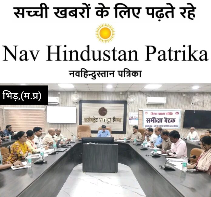 भिंड,मध्यप्रदेश। कलेक्टर भिण्ड की अध्यक्षता जिला स्वास्थ्य समिति की बैठक कलेक्टर सभागार भिण्ड में आयोजित की गई। इस दौरान मुख्य चिकित्सा एवं स्वास्थ्य अधिकारी भिण्ड, जिला कार्यक्रम अधिकारी महिला एवं बाल विकास विभाग भिण्ड, सिविल सर्जन सह अस्पताल अधीक्षक जिला चिकित्सालय भिण्ड, समस्त खण्ड चिकित्सा अधिकारी, समस्त ब्लॉक कार्यक्रम प्रबंधक, समस्त ब्लॉक कम्यूनिटी मोबिलाईजर सहित अन्य अधिकारी उपस्थित रहे।