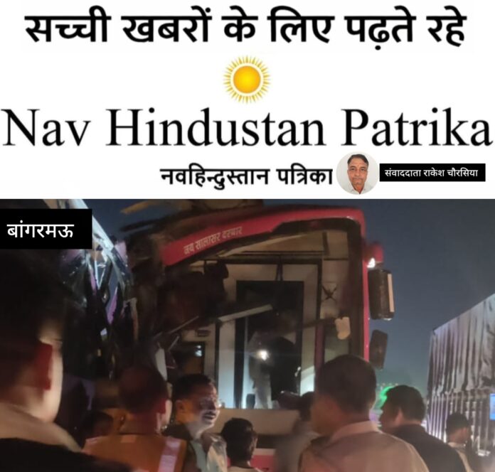 मालूम हो कि डी सी एम चालक अवधेश पुत्र मुन्नालाल निवासी ककरइया नादेमऊ थाना सौरिख जनपद कन्नौज अपनी गाड़ी में पार्सल का सामान लोडकर दिल्ली से बस्ती जा रहा था। तभी शुक्रवार की रात करीब 1 बजे बांगरमऊ क्षेत्र में आगरा लखनऊ एक्सप्रेसवे पर गांव देवरखेडा के निकट चालक को झपकी आ गई जिससे वाहन अनियंत्रित होकर मध्य डिवाइडर से चढ़कर विपरीत लेन के मार्ग पर जाकर पलट गया। इसी दौरान जिंक बस सेवा की बस जो सवारियां लेकर लखनऊ से दिल्ली जा रही थी । पलटी डी सी एम से टकराकर क्षतिग्रस्त हो गई ।इसी दौरान गोरखपुर से जयपुर जाने वाली एक दूसरी बस ने उस बस में पीछे से टकरा गई।इस हादसे के बाद यूपीडा रेस्क्यू दल द्वारा अन्सी राजश्री नामक कंपनी की बस चालक के चालक रामचंद्र उर्फ रामसुंदर पुत्र हरिकिशन ,जिंक बस सेवा के चालक सुरेश चंद पुत्र ताराचंद निवासी गोधरा कला जनपद झुंझुनू राजस्थान,सुशील पुत्र धर्मु निवासी आजम गढ़,रवि कुमार पुत्र शेर सिंह निवासी करौली राजस्थान,नागेन्द्र प्रसाद पुत्र ओसियर निवासी पटहेरवा जनपद कुशीनगर,मैनुद्दीन पुत्र मुस्तकीम निवासी तरकुलवा जनपद देवरिया व राकेश पुत्र बहादुर सिंह निवासी गोमती नगर लखनऊ इन सात लोगों को बांगरमऊ अस्पताल लाकर भर्ती कराया गया । जहां पर डाक्टरों ने बस सवार राकेश पुत्र बहादुर सिंह निवासी गोमती नगर (मूल निवासी उत्तराखंड)को मृत घोषित कर दिया गया।पुलिस ने परिजनों को सूचित कर शव पोस्टमार्टम भेज दिया गया।जबकि गंभीर घायलों को जिला अस्पताल रेफर कर दिया गया।